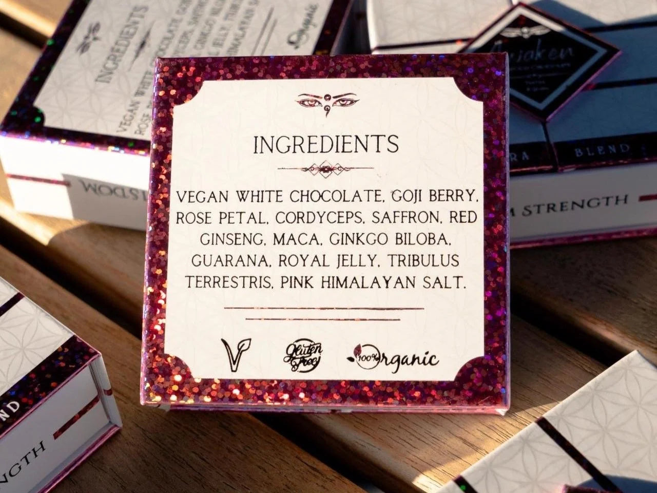 Smooth, creamy vegan white chocolate with notes of sun-ripened strawberry, floral rose petals, and a mineral kiss of Pink Himalayan salt. Feminine, radiant, and vibrationally attuned.